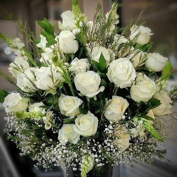 Fanusta Beyaz Gül ve Lilyum Aranjman